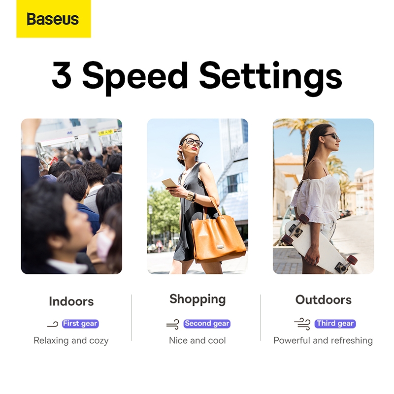 Quạt Mini Cầm Tay Baseus 2000/4000mAh | 3 Tốc Độ Gió, Mát Lạnh Tức Thì (4000mAh)