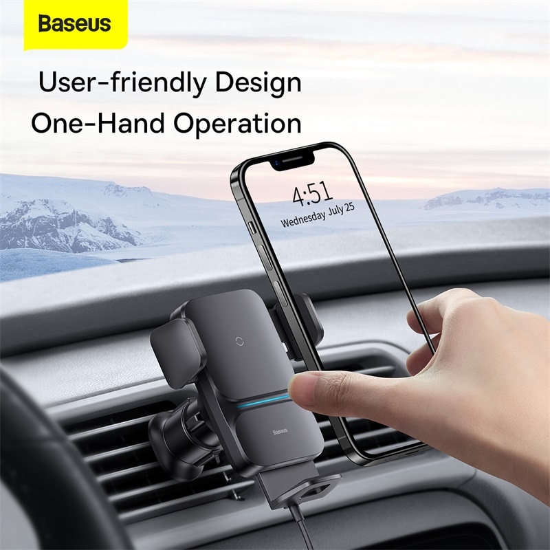 Bộ Đế Giữ Điện Thoại Tích Hợp Sạc Không Dây Baseus Wisdom Auto Alignment Car Mount Wireless Charger(QI 15W)