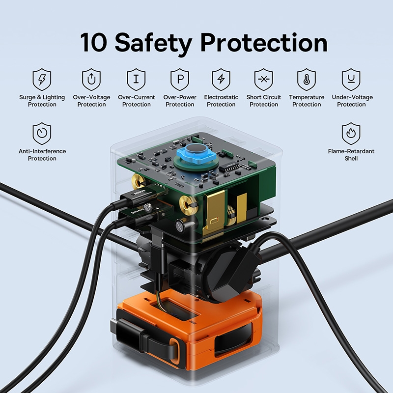 Bên cạnh đó, bộ sạc nhanh 65W OS-Baseus PowerCombo Digital PowerStrip được trang bị các tính năng an toàn, bao gồm bảo vệ quá tải, bảo vệ ngắn mạch và bảo vệ quá nhiệt, giúp đảm bảo an toàn khi sử dụng sản phẩm.
