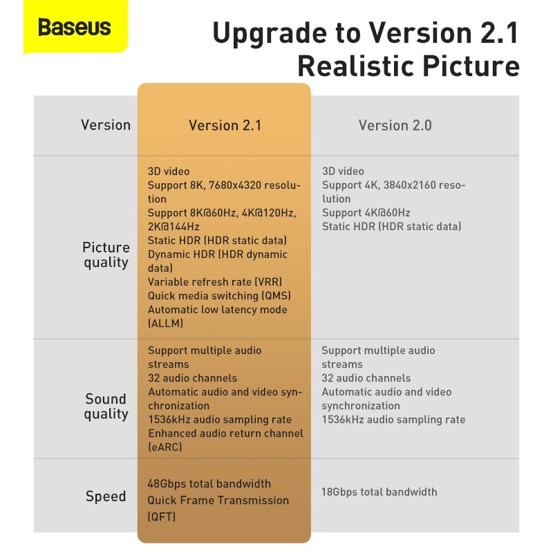Cáp HDMI 2.1 8K Baseus High Definition Series là lựa chọn lý tưởng cho người dùng đang tìm kiếm giải pháp truyền tín hiệu hình ảnh và âm thanh chất lượng cao. Với thiết kế bền bỉ, chuẩn kết nối hiện đại và hiệu suất vượt trội, sản phẩm đáp ứng tốt cả nhu cầu giải trí lẫn công việc chuyên nghiệp, mang lại trải nghiệm hình ảnh và âm thanh ấn tượng trong mọi tình huống sử dụng.
