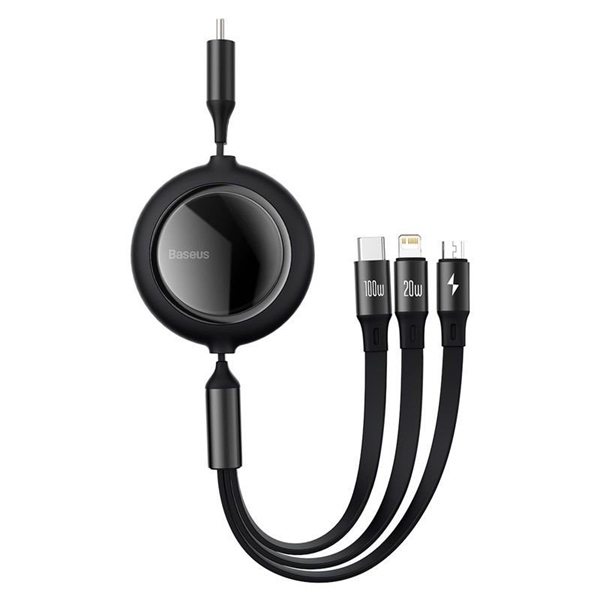 Cáp Sạc Dây Rút 3 Đầu Baseus Bright Mirror | Type-C to M+L+C Sạc Nhanh Laptop Điện Thoại 1.2M, 100W