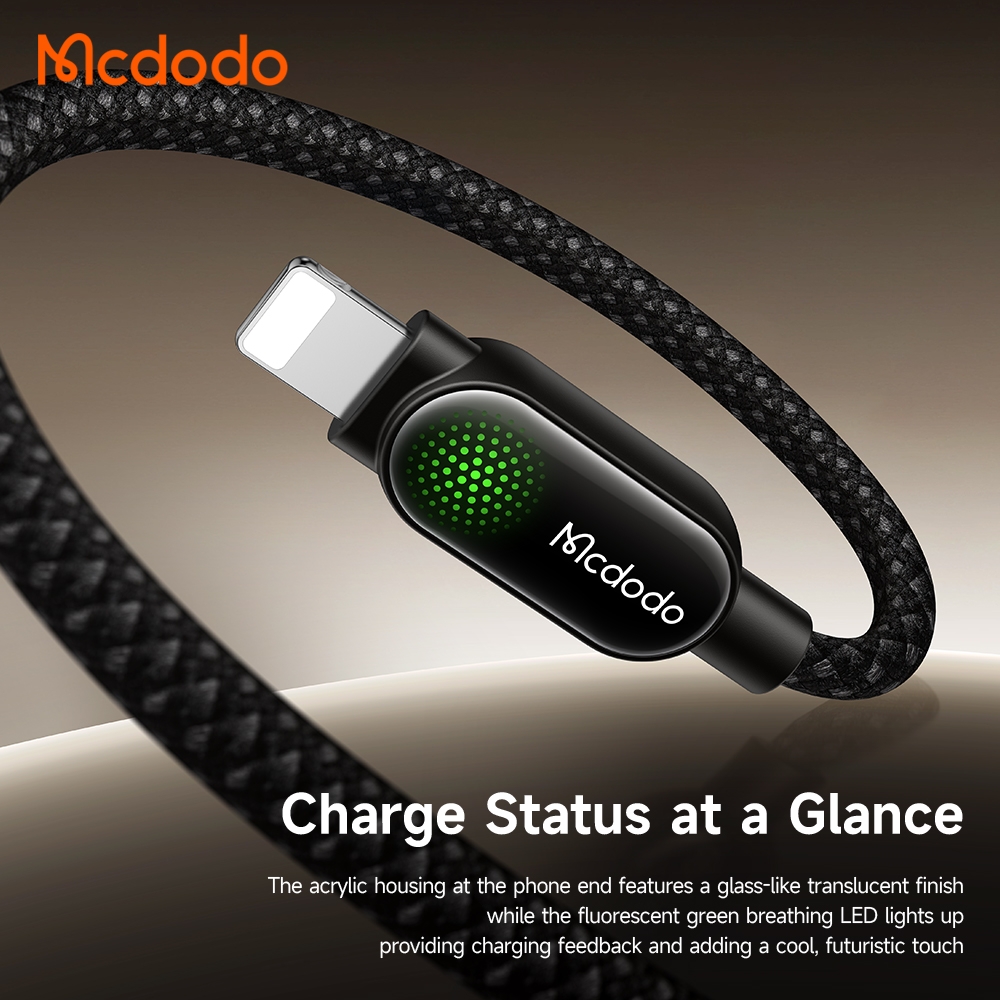 Bạn đang tìm một sợi cáp sạc 12W cho iP vừa bền bỉ vừa có đèn báo độc đáo? 📱 Cáp Mcdodo LightSync chính là câu trả lời! Với thiết kế đèn LED hiệu ứng "thở" (Breathing LED) màu xanh lá huỳnh quang cực kỳ phong cách, bạn có thể dễ dàng biết trạng thái sạc. Cáp bọc dù siêu bền, sạc nhanh 3A an toàn cho thiết bị.