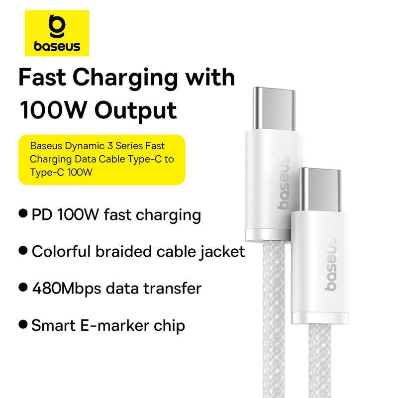 Cáp Sạc Baseus Dynamic 3 100W Type-C to Type-C | Thế Hệ Mới, Chip E-Marker, Bền Bỉ