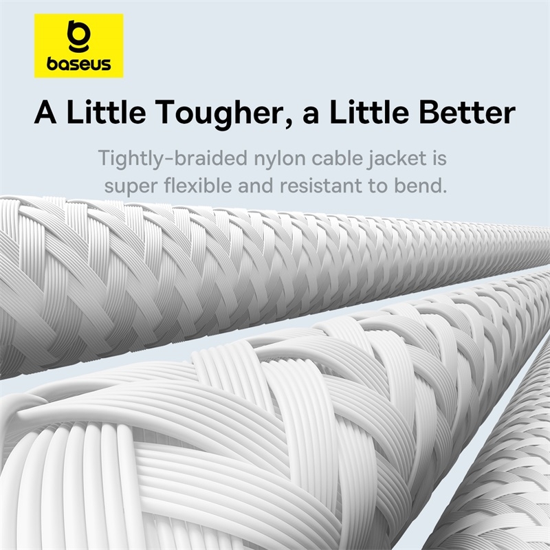 💪 Thiết Kế Bện Dù Thế Hệ Mới, Bền Bỉ Vượt Trội: Lớp vỏ cáp được dệt từ sợi nylon mật độ cao với kết cấu mới, không chỉ mang lại vẻ ngoài tinh tế mà còn siêu bền, chống mài mòn, chống rối và chống đứt gãy hiệu quả hơn các thế hệ trước.