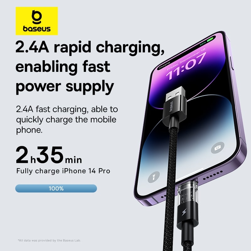 Cáp Sạc Siêu Bền Baseus Gem 2.4A USB to Ln | Dây Dù Chống Đứt, Đầu Trong Suốt