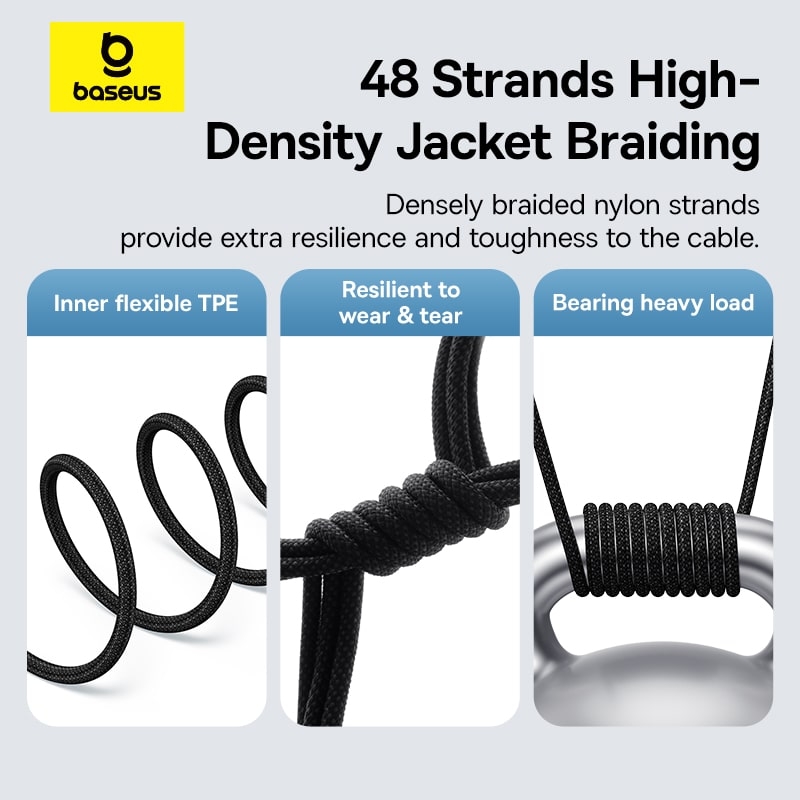 💪 SIÊU BỀN BỈ, CHỐNG ĐỨT GÃY: Được chế tạo để trường tồn. Dây cáp được bện từ 48 sợi nylon mật độ cao, cực kỳ dẻo dai và chắc chắn. Thiết kế đầu cắm liền khối đã vượt qua bài kiểm tra uốn cong hơn 10,000 lần, hạn chế tối đa tình trạng gãy đứt thường gặp.
