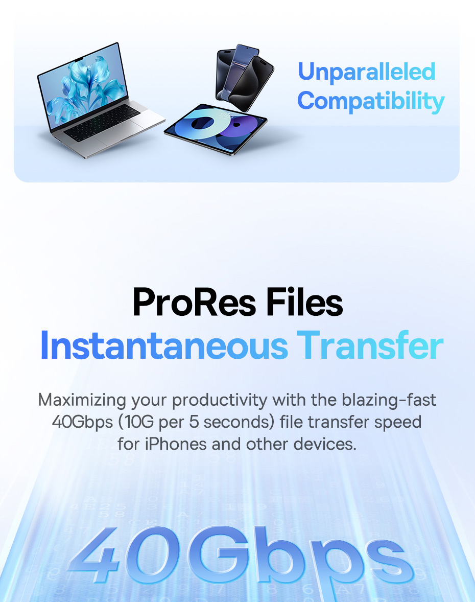 📁 TRUYỀN DỮ LIỆU 40Gbps - 10GB TRONG 5 GIÂY: Tốc độ truyền tải đáng kinh ngạc. Với băng thông lên đến 40Gbps, bạn có thể sao chép một tệp dữ liệu 10GB chỉ trong 5 giây. Một công cụ không thể thiếu cho các nhà sáng tạo nội dung, biên tập video và chuyên gia IT.