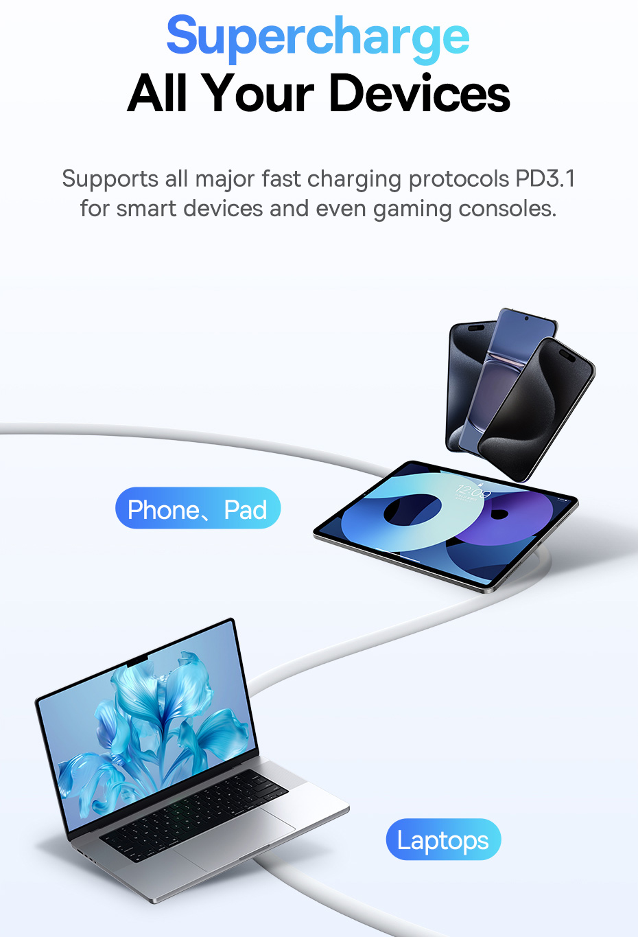⚡ SẠC SIÊU TỐC 240W PD 3.1 - SỨC MẠNH CỦA TƯƠNG LAI: Được trang bị chuẩn Power Delivery 3.1 mới nhất, cáp có thể cung cấp công suất sạc lên đến 240W, đủ sức nạp đầy năng lượng cho cả những chiếc laptop gaming hay máy trạm đòi hỏi công suất cao nhất chỉ trong chưa đầy 2 giờ.