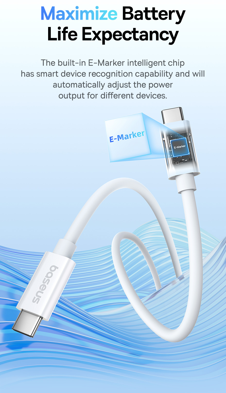○ Chip thông minh: E-Marker tích hợp để quản lý và bảo vệ dòng điện công suất cao.