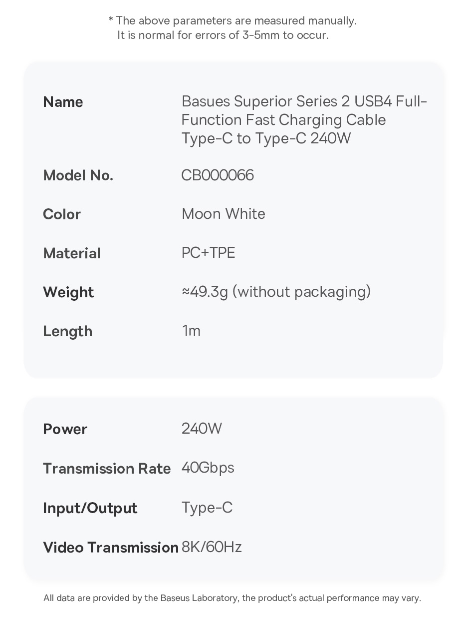 Tên Cáp Sạc Nhanh Baseus Superior Series 2 USB4 Full-Function Fast Charging Cable Type-C to Type-C 240W