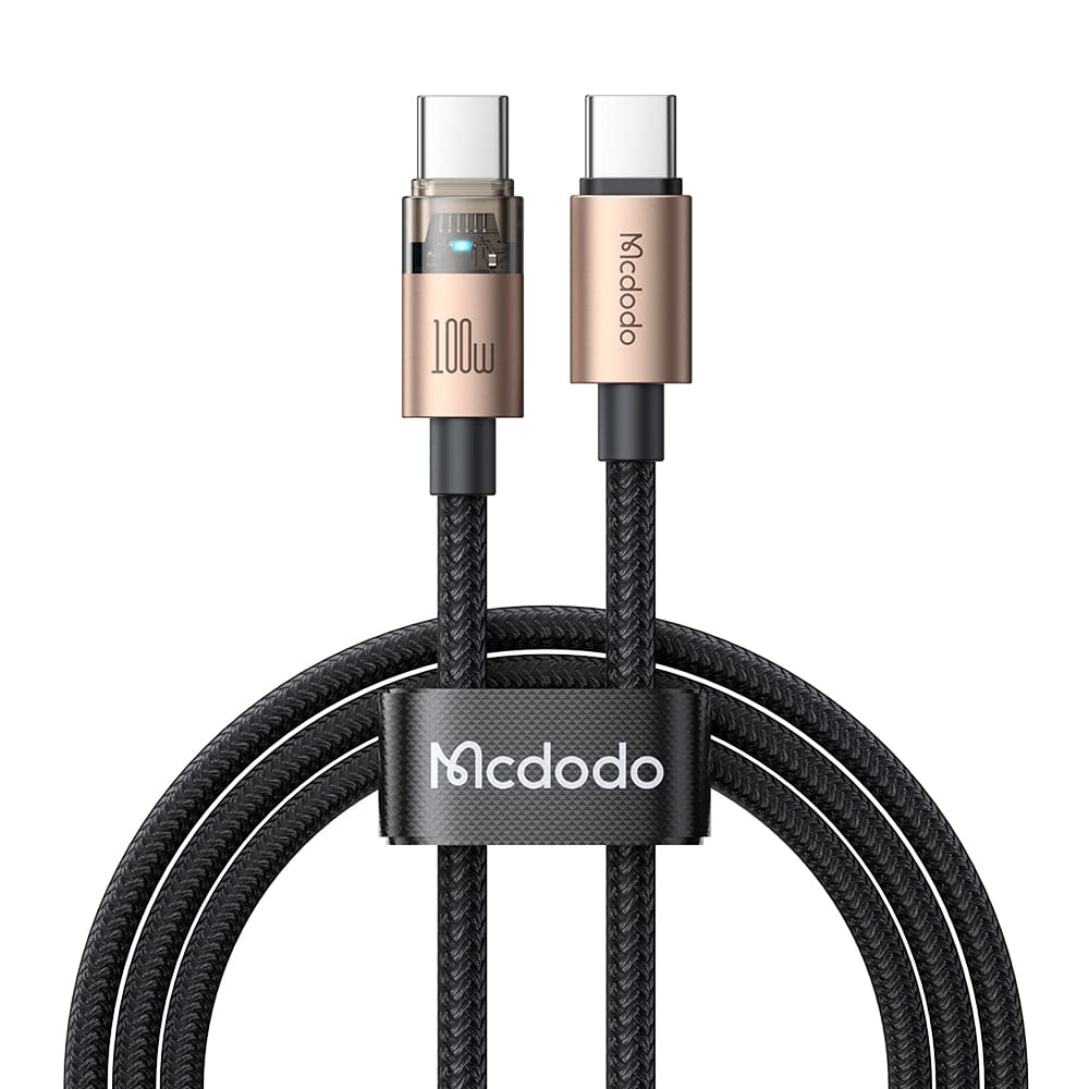 Cáp Sạc Nhanh Mcdodo 100W PD Type-C to Type-C | Thiết Kế Trong Suốt Lộ Mạch, Có Đèn LED