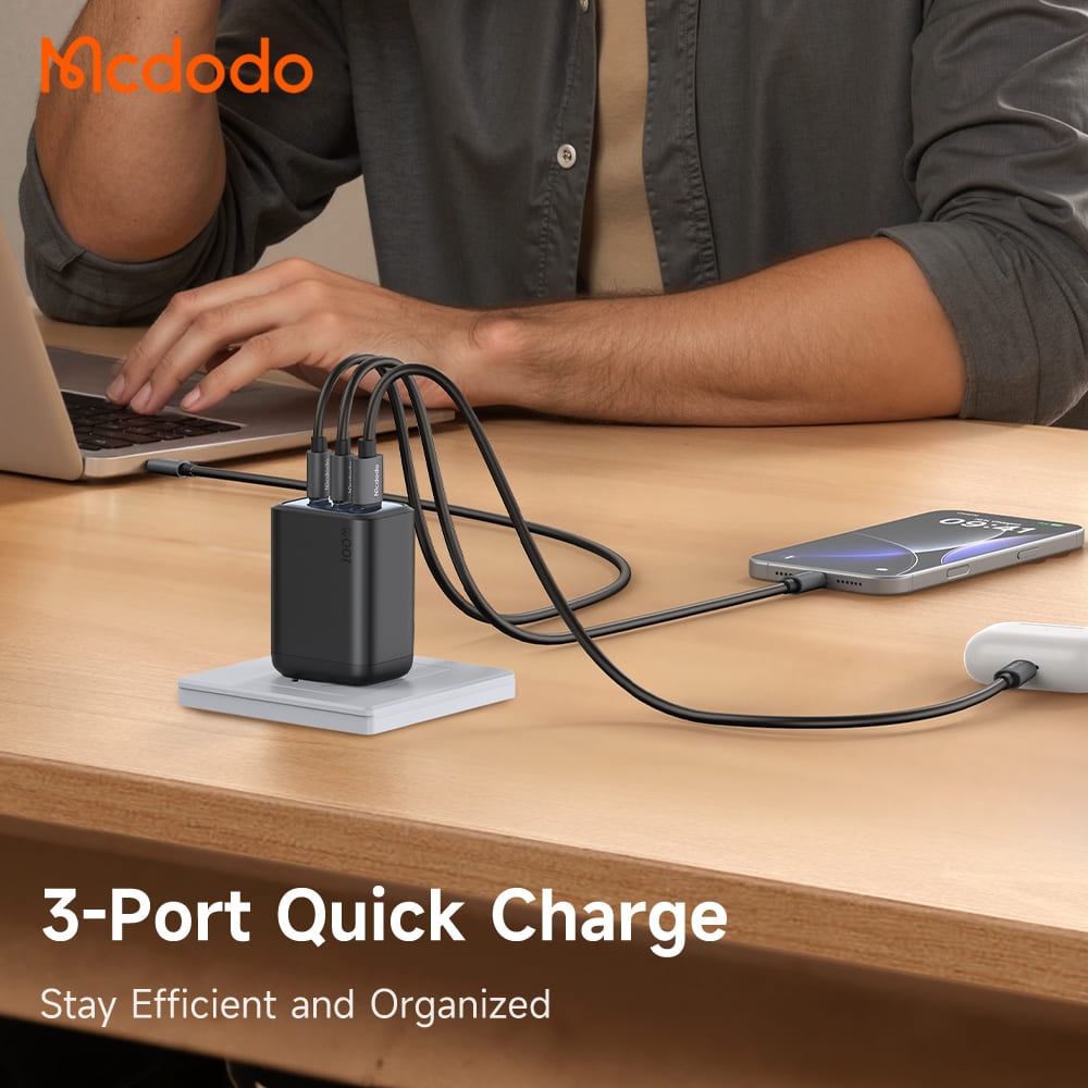 Cốc Sạc Nhanh Mcdodo Gana Mini 100W | 3 Cổng Sạc, Sạc Nhanh Laptop Điện Thoại, 2Type-C + USB