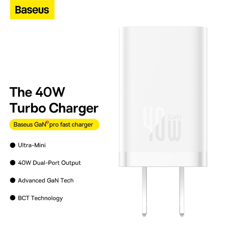 Cốc Sạc Nhanh Nhỏ Gọn OS-Baseus GaN5 Pro Fast Charger C+C 40W US (Chân cắm dẹp US) là một sản phẩm sạc nhanh và tiện lợi từ Baseus, một thương hiệu phụ kiện di động nổi tiếng.