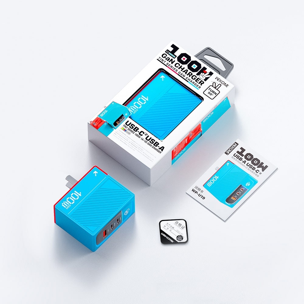Cốc Sạc Nhanh WEKOME WP-U19 Tint Series 100W 1A+2C 100W GaN Charger là một sản phẩm sạc nhanh hàng đầu, sử dụng công nghệ GaN (Gallium Nitride) để mang lại hiệu suất và tốc độ sạc vượt trội. Dưới đây là một mô tả chi tiết về sản phẩm: