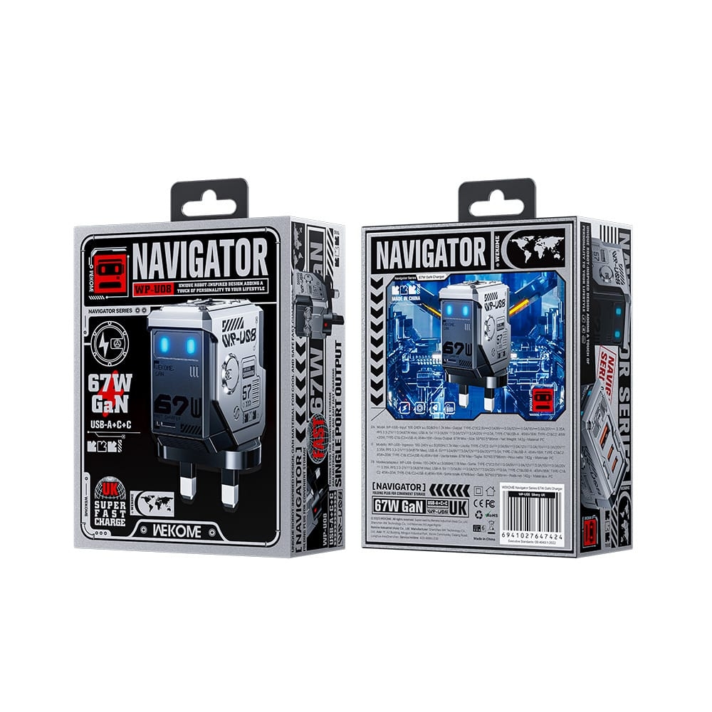 Tên Cốc Sạc Nhanh WP-U08 Navigator Series GaN Charger 67W (Chân cắm dẹp US)