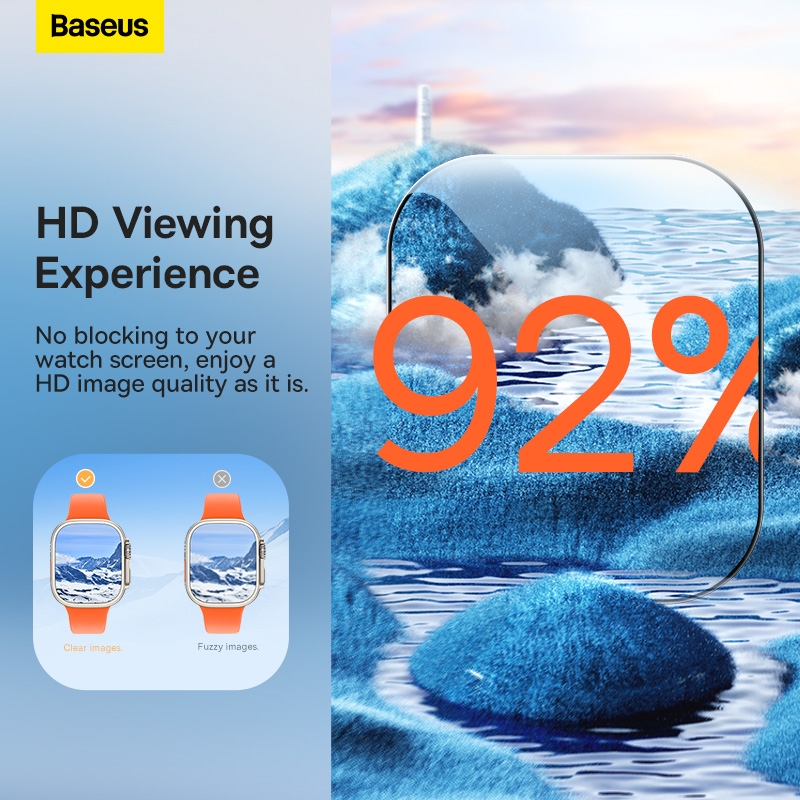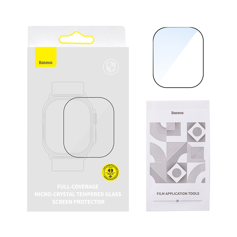 Cường lực cho Apple Watch Baseus Full-Coverage Micro-Crystal Tempered Glass Screen Protector for AP Watch Ultra 49mm, Clear (Pack of 1 with cleaning kit)