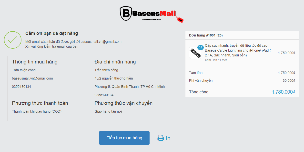 Sau khi tiến hành đặt hàng quý khách đợt nhân viên BESI.VN liên hệ chốt đơn cho mình: