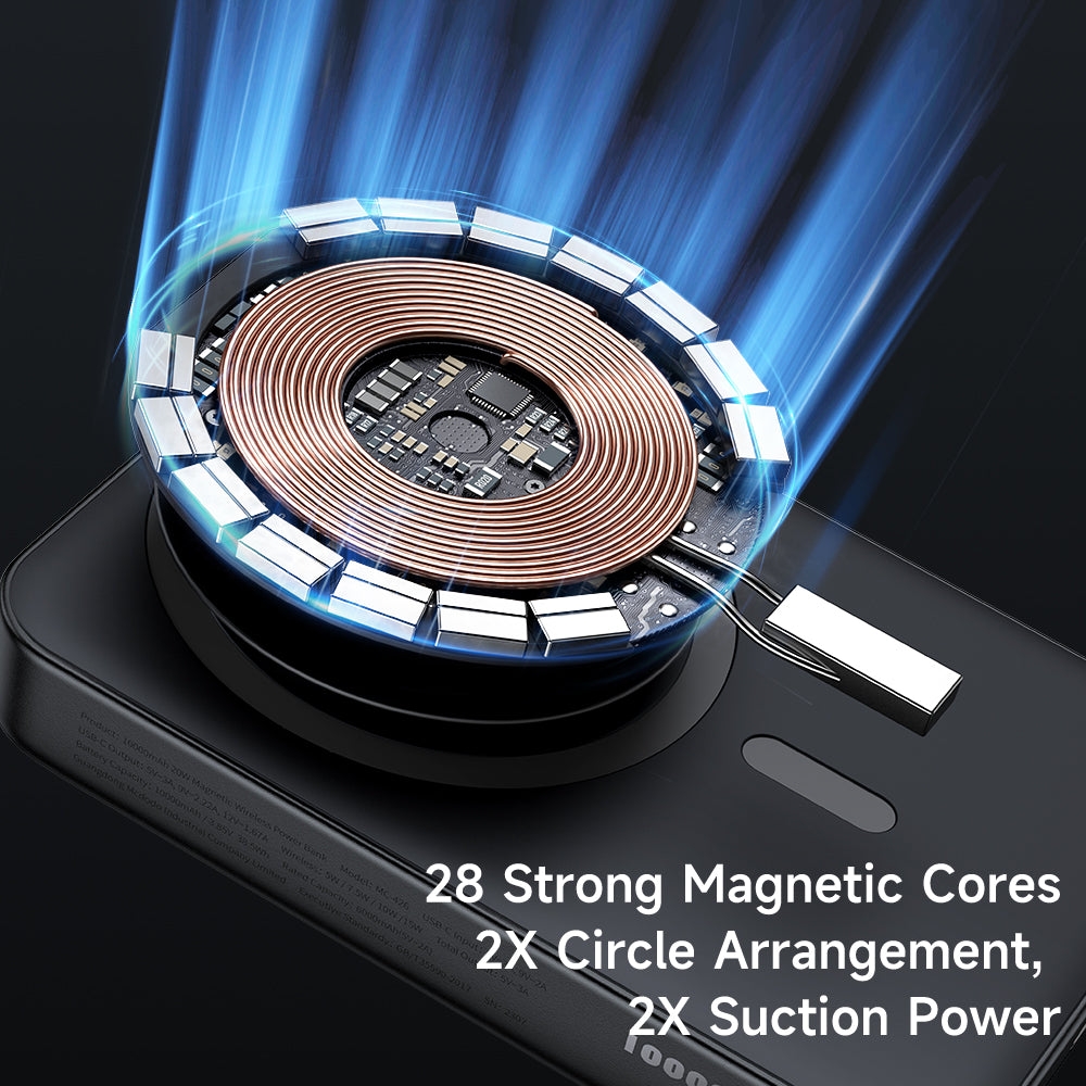 🧲 LỰC HÚT NAM CHÂM GẤP ĐÔI - CHẮC CHẮN KHÔNG RƠI RỚT: Được trang bị tới 28 lõi nam châm cực mạnh sắp xếp theo 2 vòng tròn, pin hít chặt vào mặt lưng điện thoại một cách ổn định, đảm bảo không bị rơi hay lệch vị trí sạc ngay cả khi di chuyển.