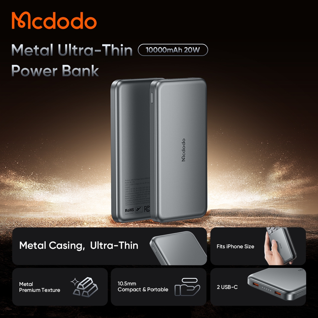 Pin Sạc Dự Phòng Mcdodo Metal Ultra-Thin Siêu Mỏng 10000mAh | Sạc Nhanh 20W, 2 Cổng Type-C