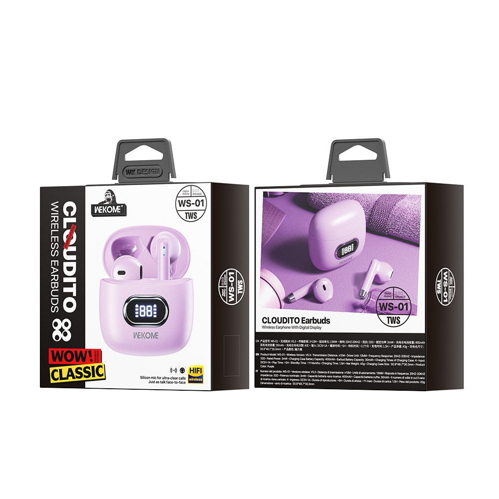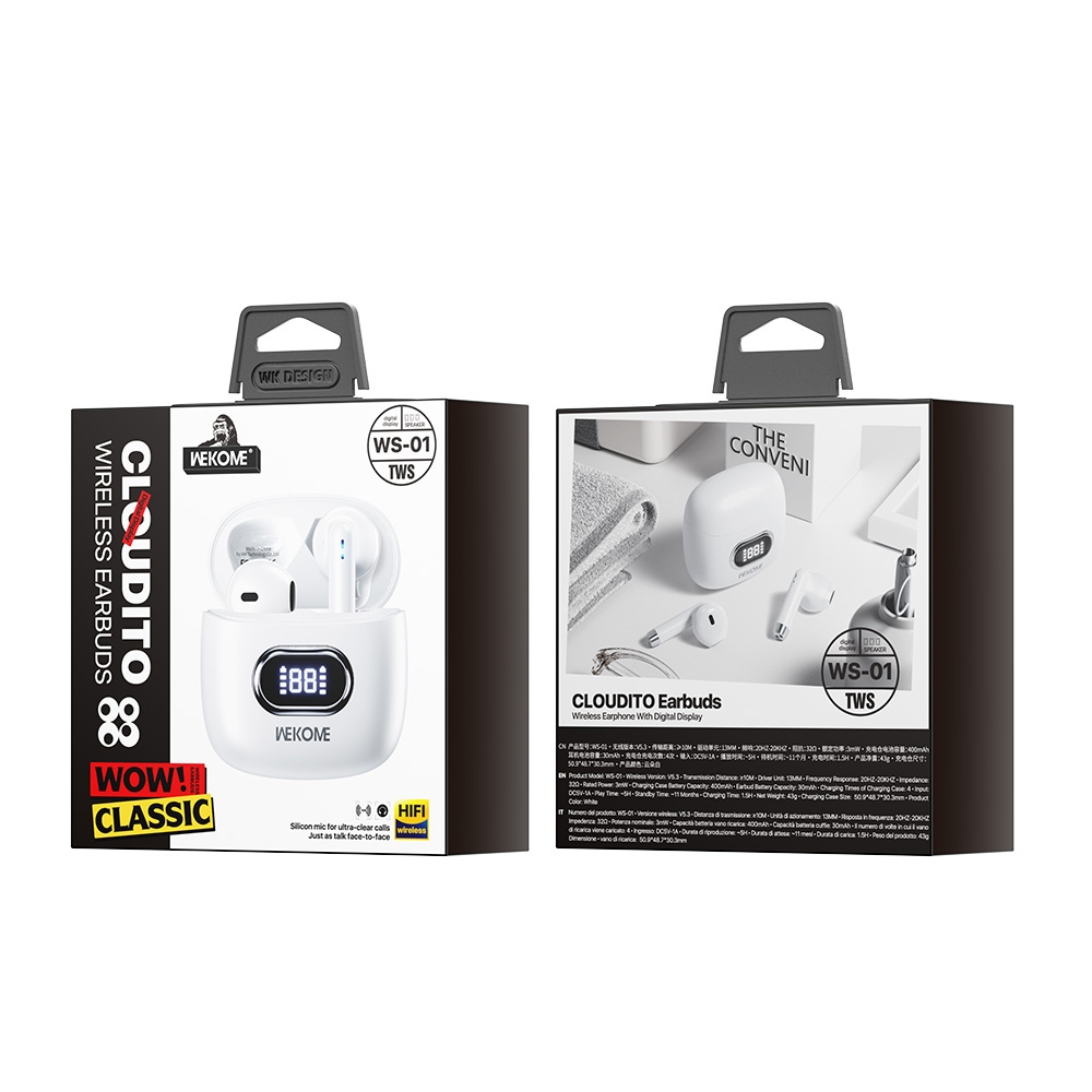 Tai Nghe Bluetooth Wekome Dreamy Sound WS-01 Wireless Earphone là một sản phẩm tai nghe không dây với âm thanh chất lượng cao, thiết kế thoải mái và tính năng hiện đại. Dưới đây là một mô tả tổng quan về sản phẩm: