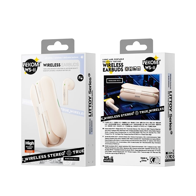 Tai nghe Bluetooth Wekome WS-11 Littoy Wireless Earbuds là một sản phẩm tai nghe không dây tiện ích và đa năng từ Wekome, với nhiều tính năng và thiết kế hiện đại. Dưới đây là một số điểm nổi bật của sản phẩm: