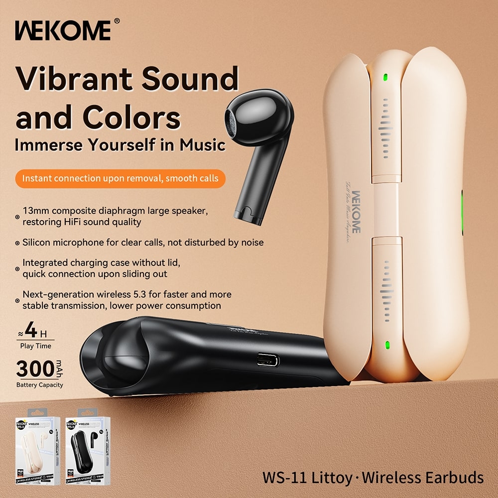 Tai nghe Bluetooth Wekome WS-11 Littoy Wireless Earbuds là một lựa chọn phổ biến cho những người muốn trải nghiệm âm nhạc một cách thuận tiện và tự do.