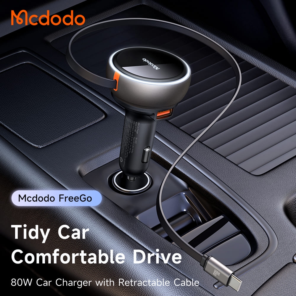 Tên Tẩu Sạc Kèm Cáp Mcdodo FreeGo 80W Car Charger with Build-in Retractable Cable