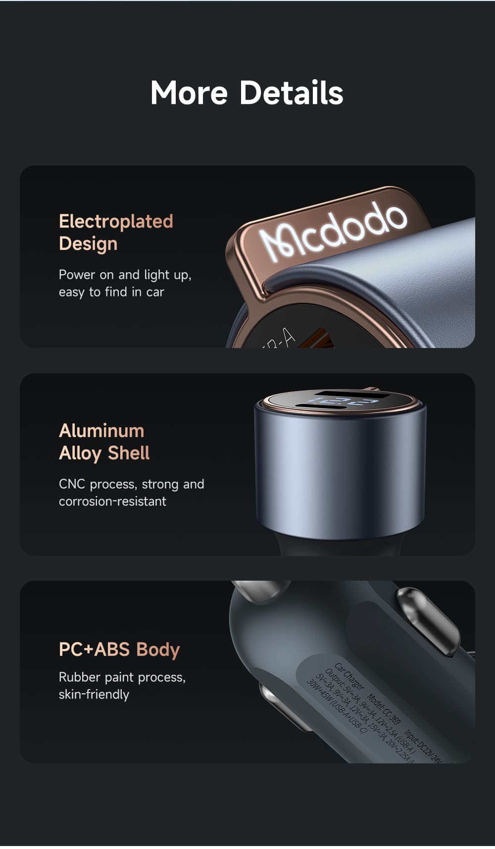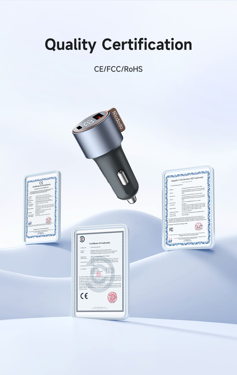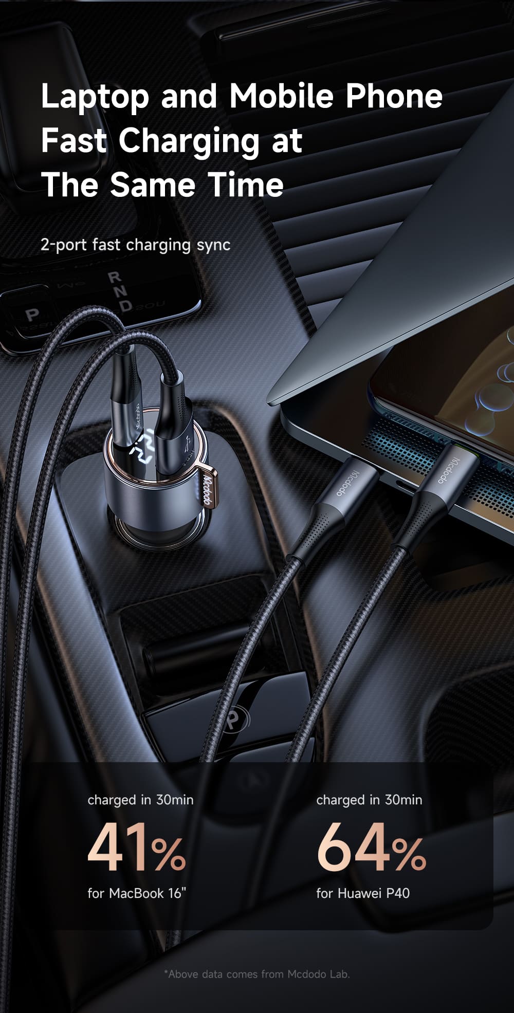 Tên Tẩu Sạc Ô Tô Mcdodo 75W | Type-C 45W + USB 30W, Có LED Hiển Thị, Hỗ Trợ SFC