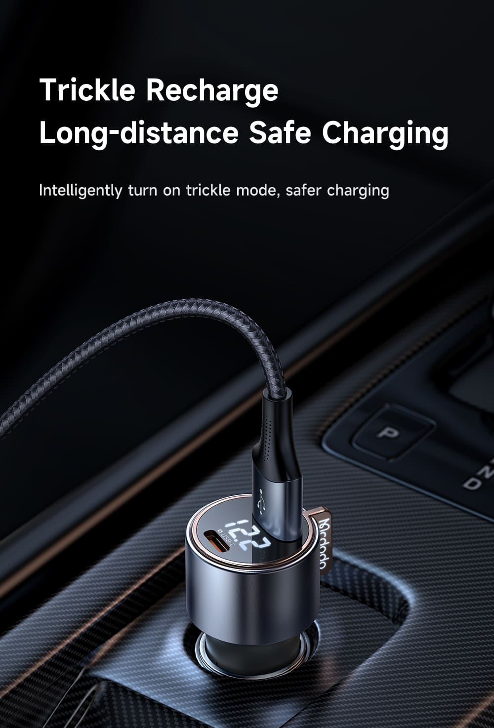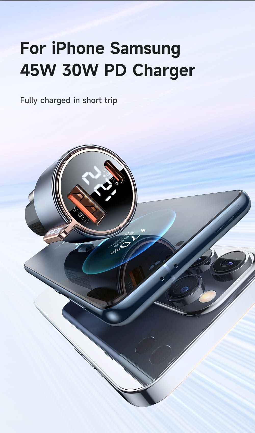 Nâng cấp sạc trên xe của bạn với Tẩu Mcdodo 75W! ⚡Thiết kế 2 cổng sạc nhanh độc lập (Type-C 45W + USB 30W), sạc siêu tốc cho Samsung (SFC 45W) và iP. Đặc biệt, màn hình LED thông minh hiển thị điện áp bình ắc quy theo thời gian thực, giúp bạn an tâm lái xe. 🚗