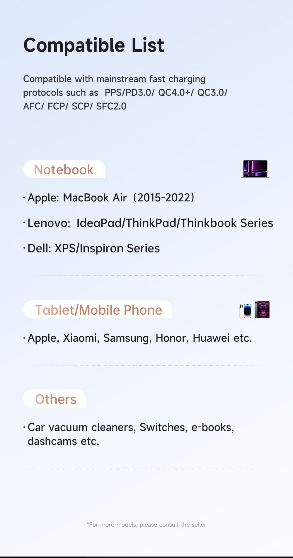 • 📱 Tương thích đa giao thức: Hỗ trợ sạc nhanh PD, QC, FCP/SCP, AFC, Samsung SFC 2.0.