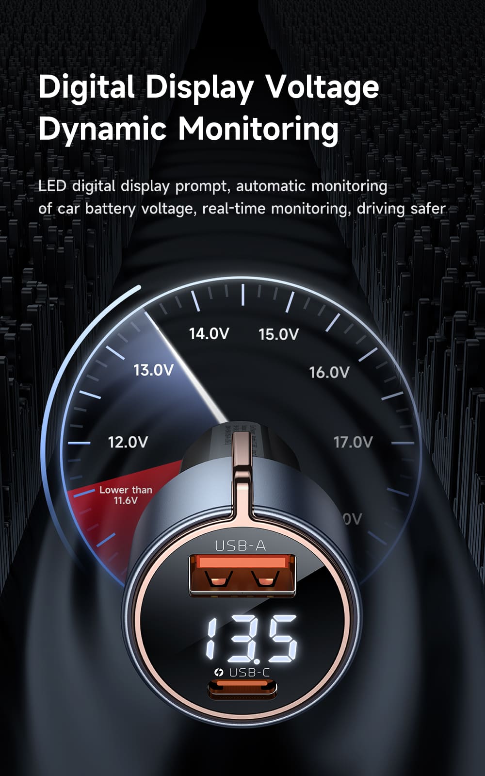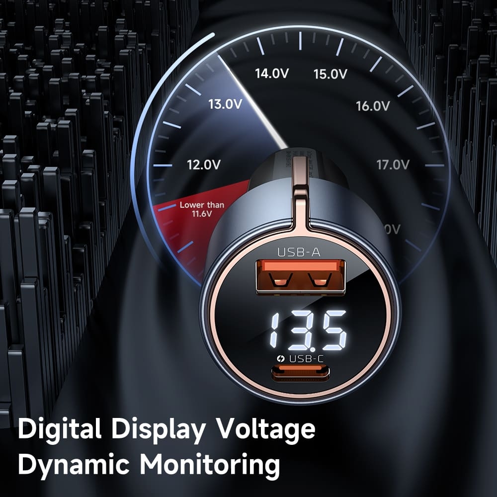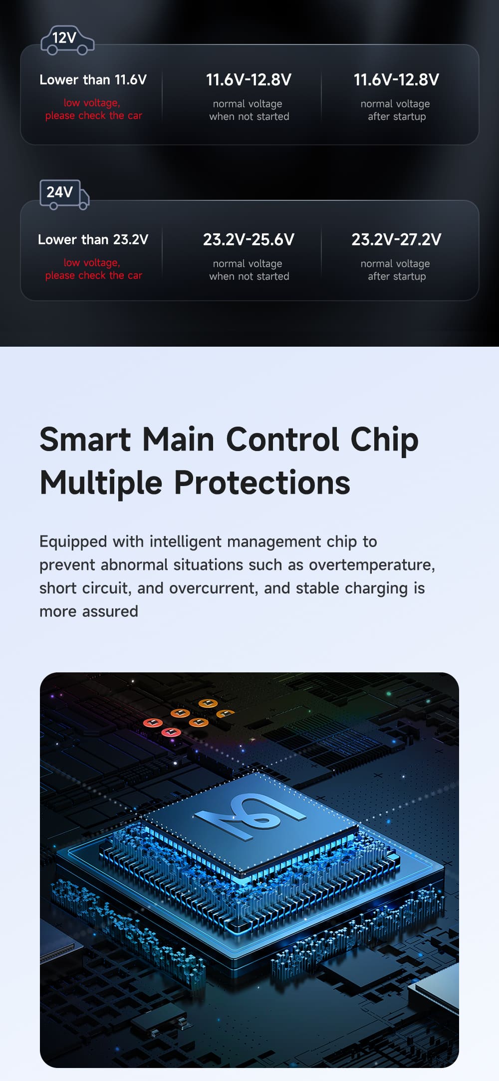 • 📊 MÀN HÌNH LED THÔNG MINH: Theo dõi điện áp bình ắc quy ô tô theo thời gian thực, an tâm lái xe.